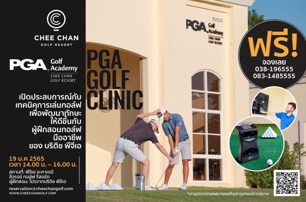 สถาบันสอนกอล์ฟ พีจีเอ อะคาเดมี ชีจรรย์ กอล์ฟ รีสอร์ท ศูนย์ฝึกซ้อมกอล์ฟระดับเฟิร์สคลาสของประเทศไทย เชิญชวนนักกอล์ฟทั่วไปที่สนใจในกีฬากอล์ฟทั้งที่ยังไม่มีพื้นฐานในการเล่นหรือมีทักษะและประสบการณ์ในระดับหนึ่งร่วมกิจกรรมกอล์ฟคลินิก โดยมี มร.ยูเว่น โฮการ์ธ ผู้ฝึกสอนกอล์ฟมืออาชีพของ บริติช พีจีเอ จากสก็อตแลนด์ ในฐานะหัวหน้าผู้ฝึกสอนประจำสถาบันฯ มาถ่ายทอดความรู้และแนะนำเทคนิคต่างๆ เพื่อเพิ่มทักษะความสามารถทางกีฬากอล์ฟ โดยกิจกรรมกอล์ฟคลินิกสำหรับนักกอล์ฟทั่วไปจะจัดขึ้นในวันที่ 19 มกราคม 2565 เวลา 14.00 น. – 16.00 น. ณ พีจีเอ อะคาเดมี ชีจรรย์ กอล์ฟ รีสอร์ท โดยไม่เสียค่าใช้จ่าย (ผู้เข้าร่วมกิจกรรมนำอุปกรณ์กอล์ฟมาเองหรือเช่าอุปกรณ์จากสนามฯ)